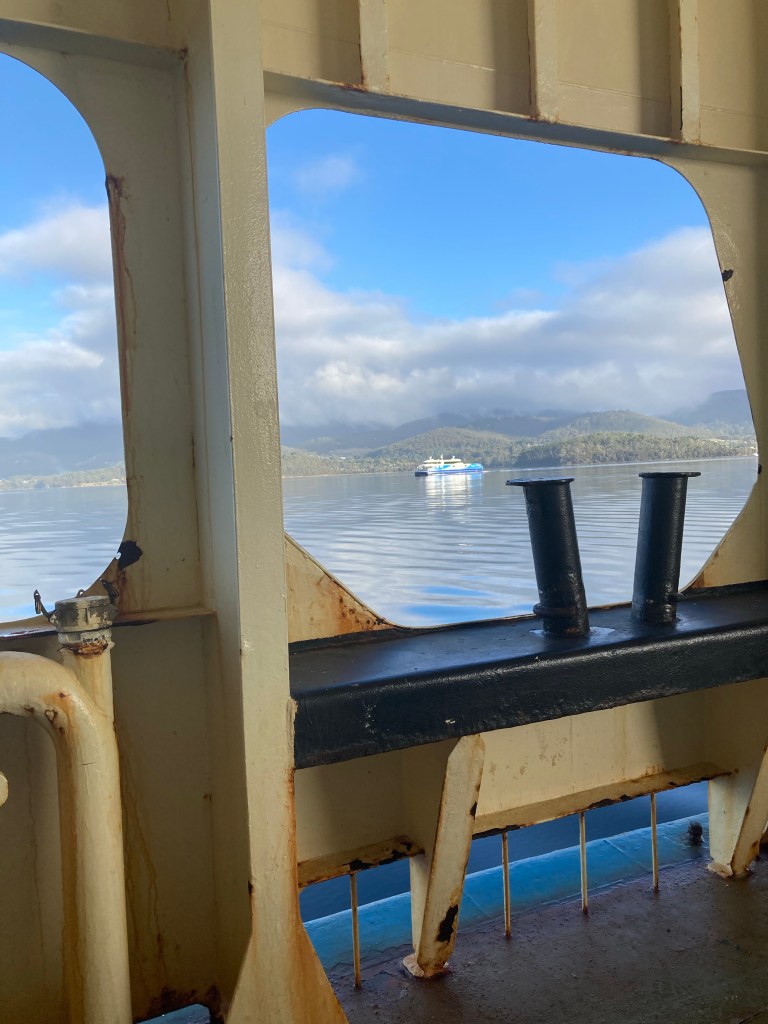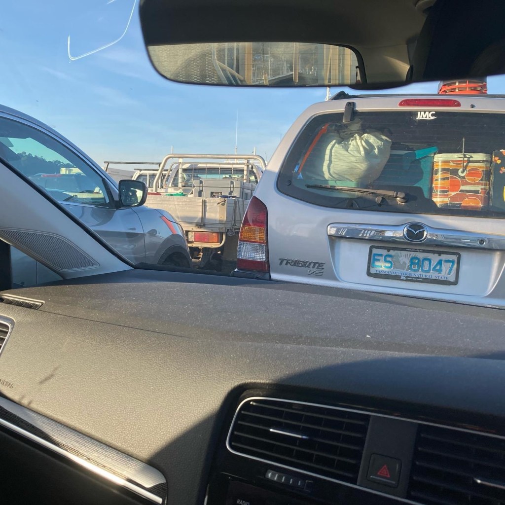 Every vehicle that comes to Bruny arrives via ferry so on any trip you can be bumper to bumper, door to door, with cars, motorbikes, cyclists, tradies, heavy machinery, buses, trucks, campervans, caravans and anything else you can think of. Pedestrians travel for free and have the luxury of an elevated lounge ( unless the Bowen’s been bought into service). Visitors get out, take selfies and marvel at the experience; locals text, read or have a quick shut eye.