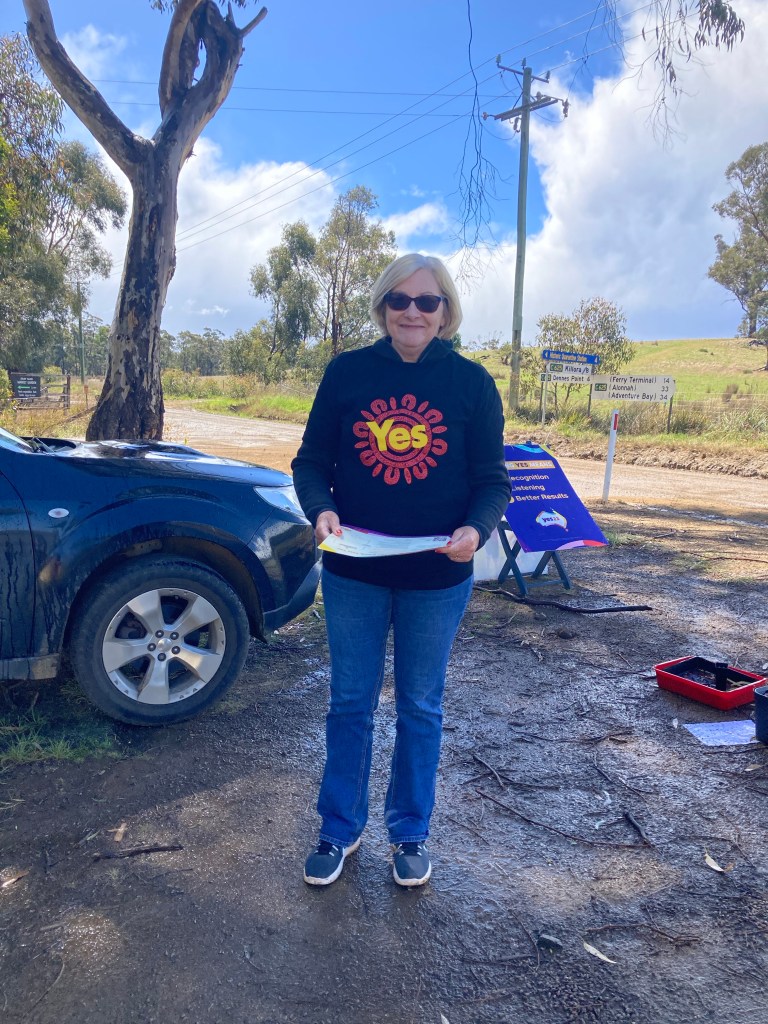 Today I was ‘Booth Captain’ for the Yes campaign at North Bruny which is a grand term for handing out how to vote forms in, at times, bitterly cold and sleety weather with my friend Sue. I also got to assemble the core flute signs ( which blew away more than once) and ensure we were beyond the prescribed 6 metres from the entrance to the polling place.