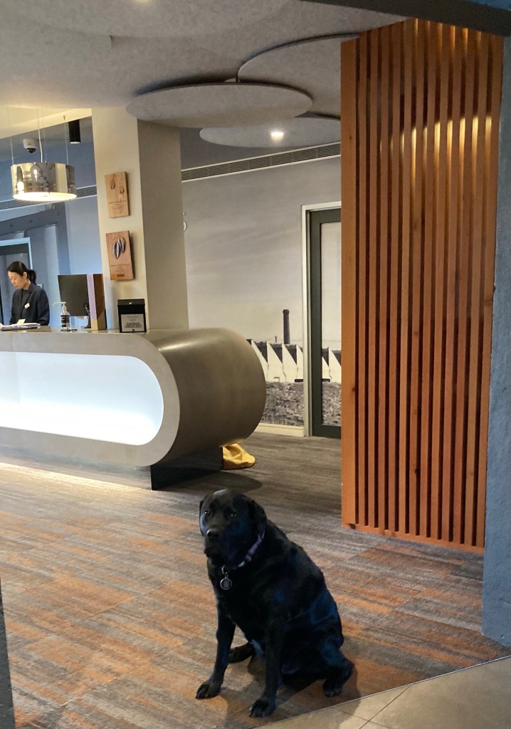 Among the beautiful gifts I received was a trip to Launceston and an early morning balloon ride from Marcus. As I write we have just returned. We had perfect spring weather and we’re able to explore Tassie’s second city by foot and by water. Our hotel was a fabulous example of building reuse, it was the former grain silos. You can image my joy when I realised that The Silos has a Canine Ambassador (Archie) , a black Labrador who ‘works’ in reception. When I popped in to see him he was mostly snoozing and the tell tale embroidered collar with ‘do not feed’ said it all.