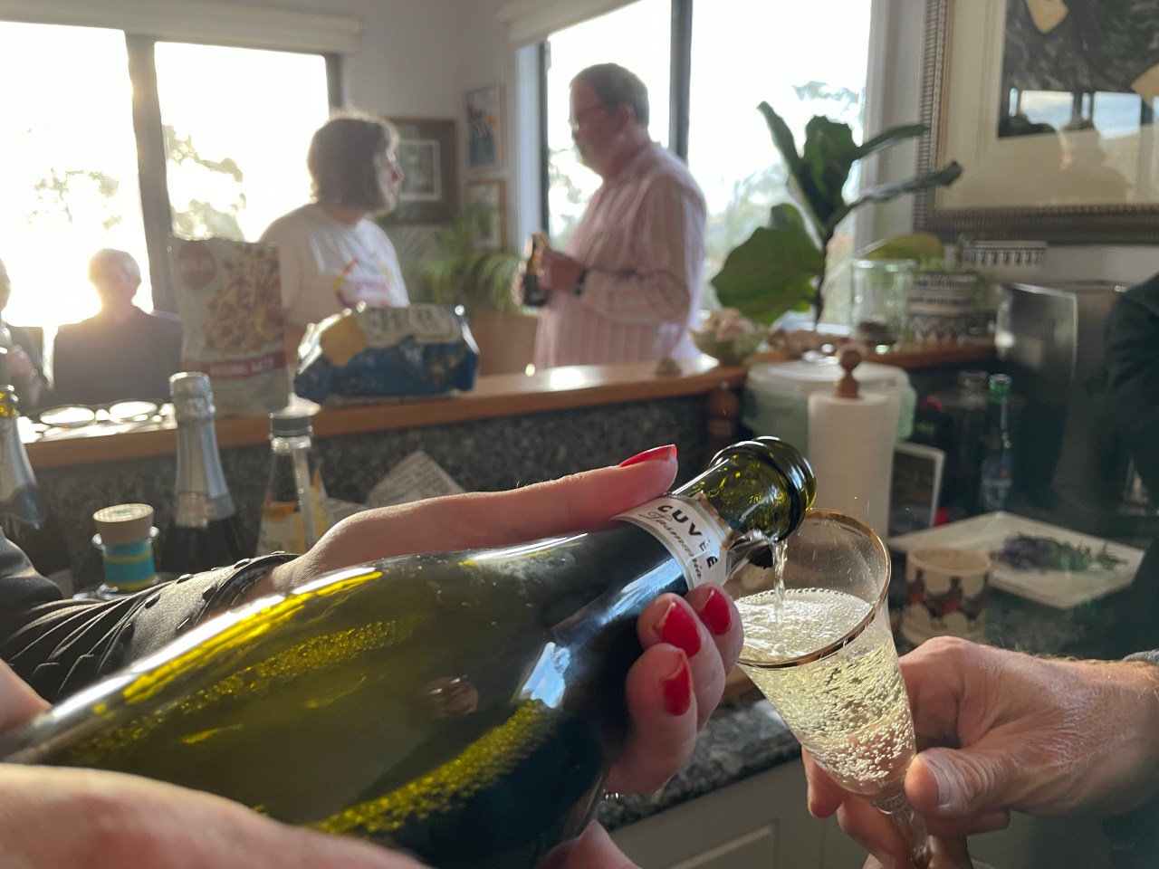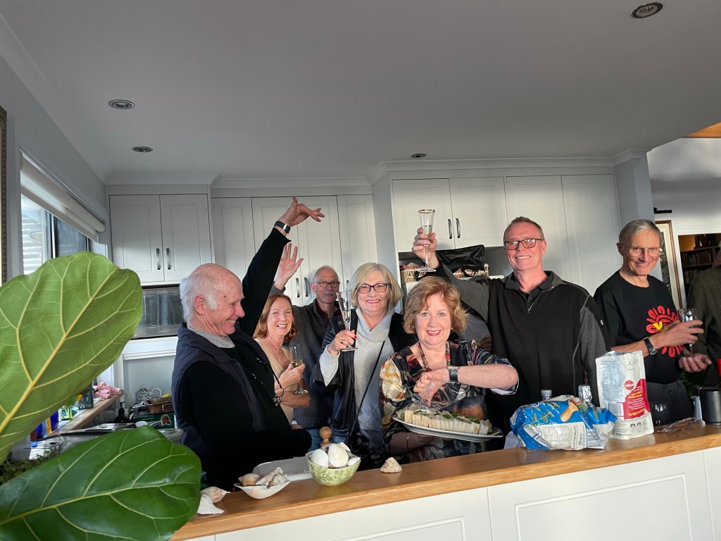 The first part of the evening started at Wainui ( ie our house) with drinks and savoury nibbles before we staggered down the drive and across the road to Wally & Giselle’s for cake and liqueurs. It was a blast back to the progressive dinners of our Wollongong days! There was much laughter and telling of tall tales, and naturally the Southern Ocean Sirens performed. Hell we’re talented, just ask us.