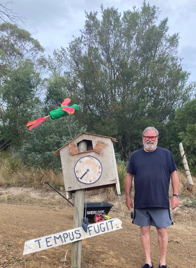 Those of you who follow us on Facebook will know that Marcus took part in the gatepost sculpture exhibition that required you to create something from recycled materials. The sounds of industry were evident from his workshop and he emerged with Tempus Fugit (time flies), a skew whiff cuckoo clock constructed from old timber and metal, pine cones gathered from the beach and a bird which started life as a plastic drink bottle. Our neighbour, Wally, had also been busy ‘creating’ and in the late afternoon before judging both entries were carefully put into place. We wandered up and down the stretch of Bruny Island Main Road connecting our houses while the sun set and not a car in sight. To steal a Darryl Kerrigan line, ‘how’s the serenity’. Excitingly Wally was awarded first prize – you can see all the entries on the Gatepost Sculpture Trail .